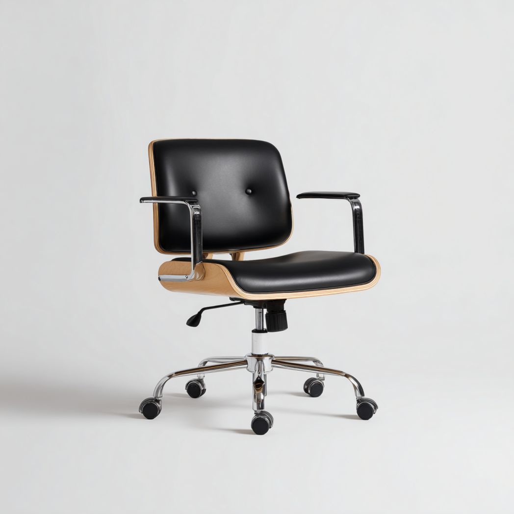 Fauteuil de bureau en simili cuir noir avec coque en bois et base pivotante€139,50Describe your product